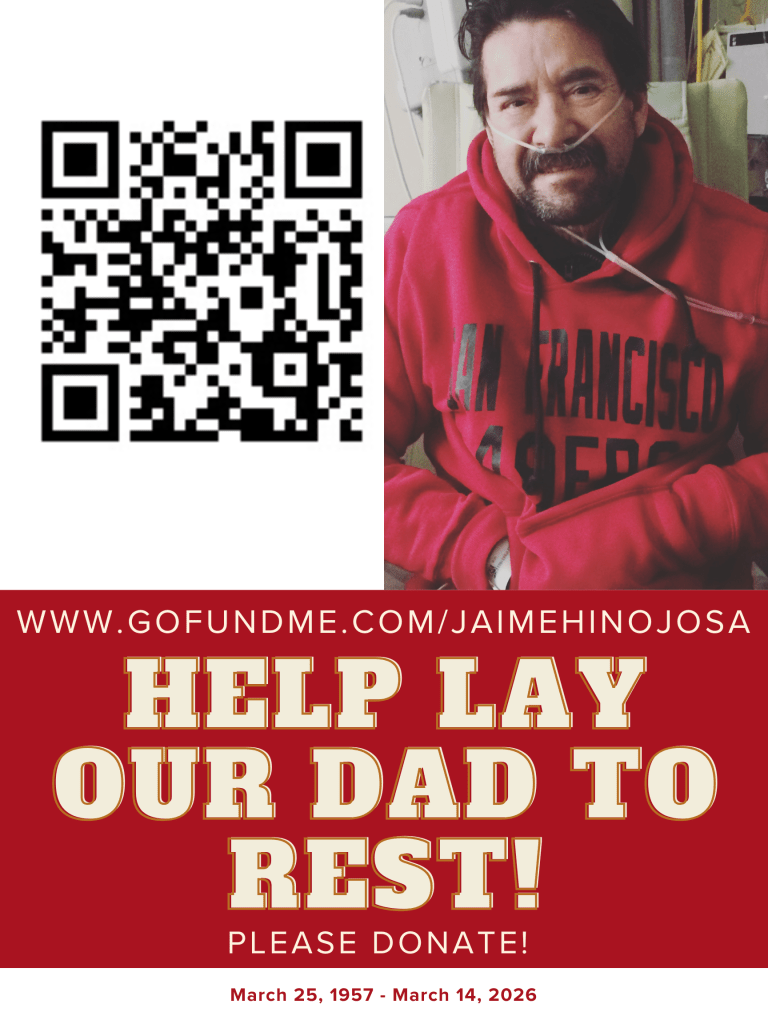 I have created http://www.GoFundMe.com/JaimeHinojosa to help cover the costs of his burial and service. If you are able to make a contribution, it would mean more than I can express. If not, simply sharing the link with others who can help would help tremendously.